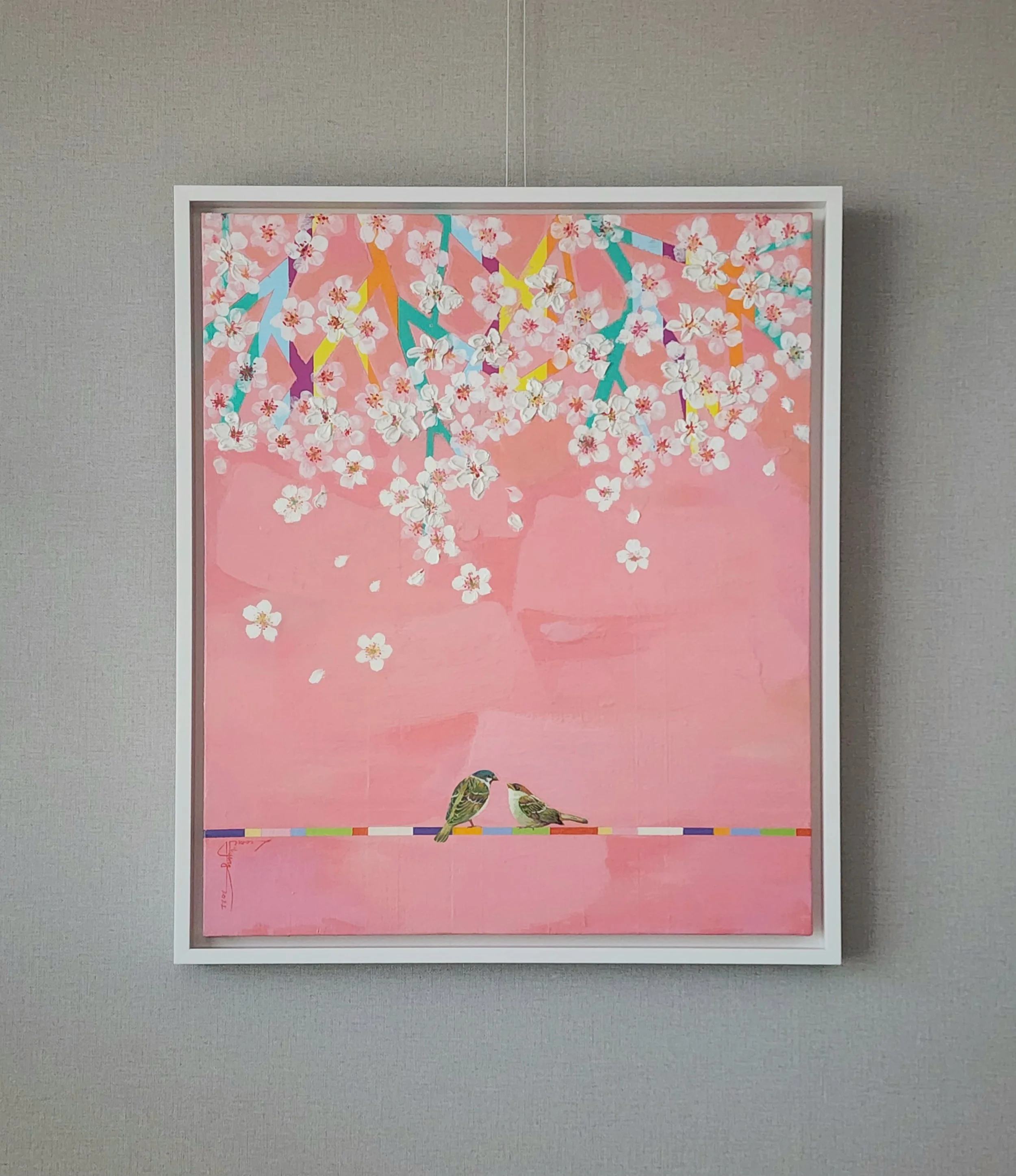 A cherry-blossom spring day with lover 60.5x50cm acrylic&oil on canvas 2022